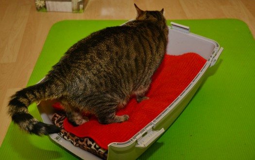 Falls eure Katze dazu neigt beim Transport in die Box zu urinieren oder zu koten oder sich während der Fahrt erbrechen muss, solltet ihr immer ein Ersatz-Handtuch mitnehmen. So kann man im Fall der Fälle das Handtuch in der Praxis austauschen, um der Katze schnell wieder eine halbwegs trockene und saubere Box zu bieten.